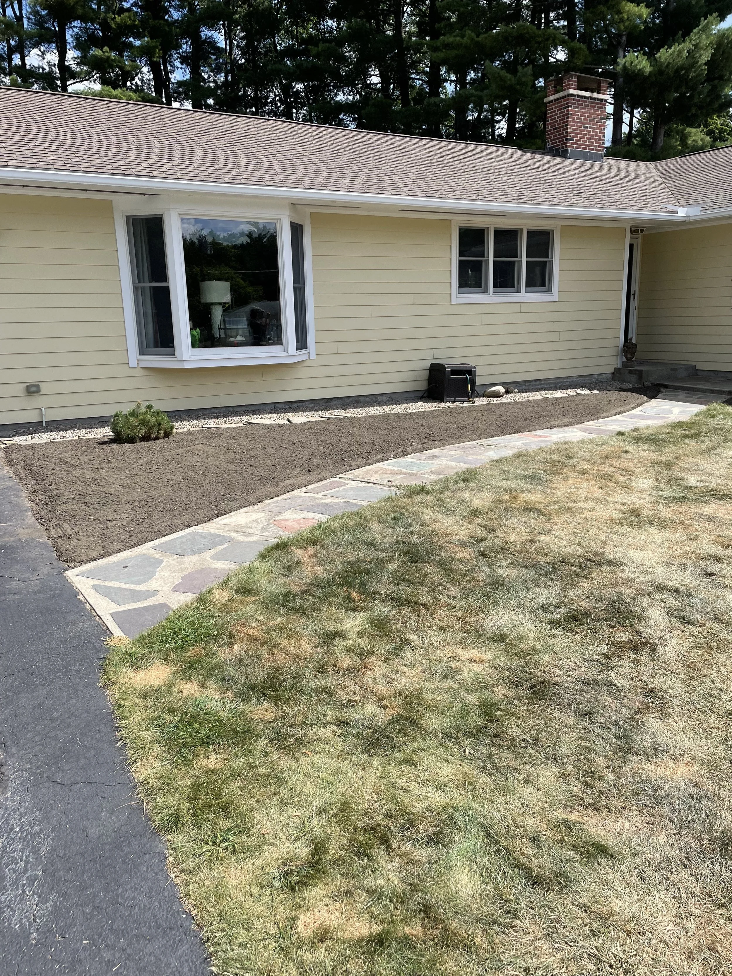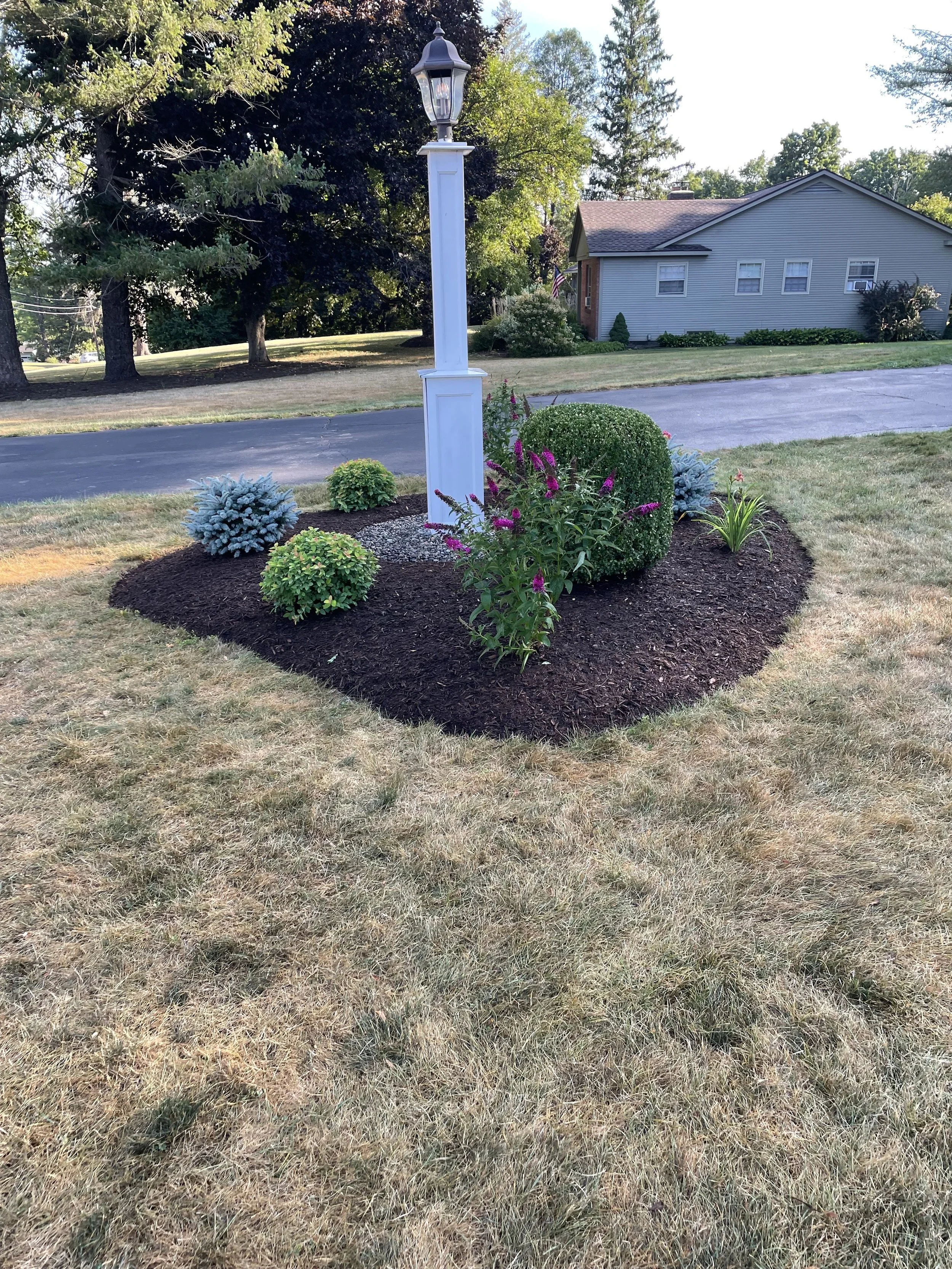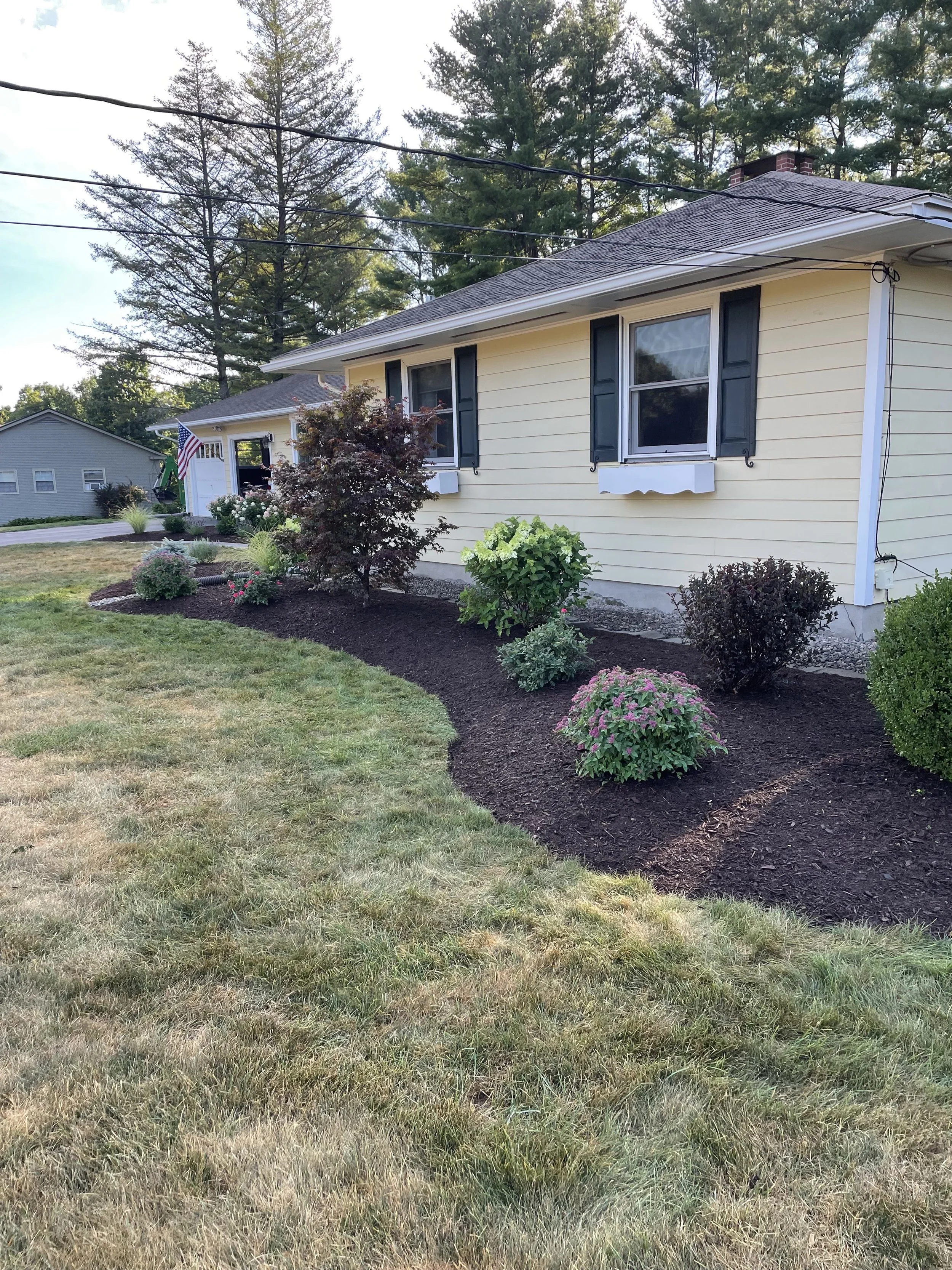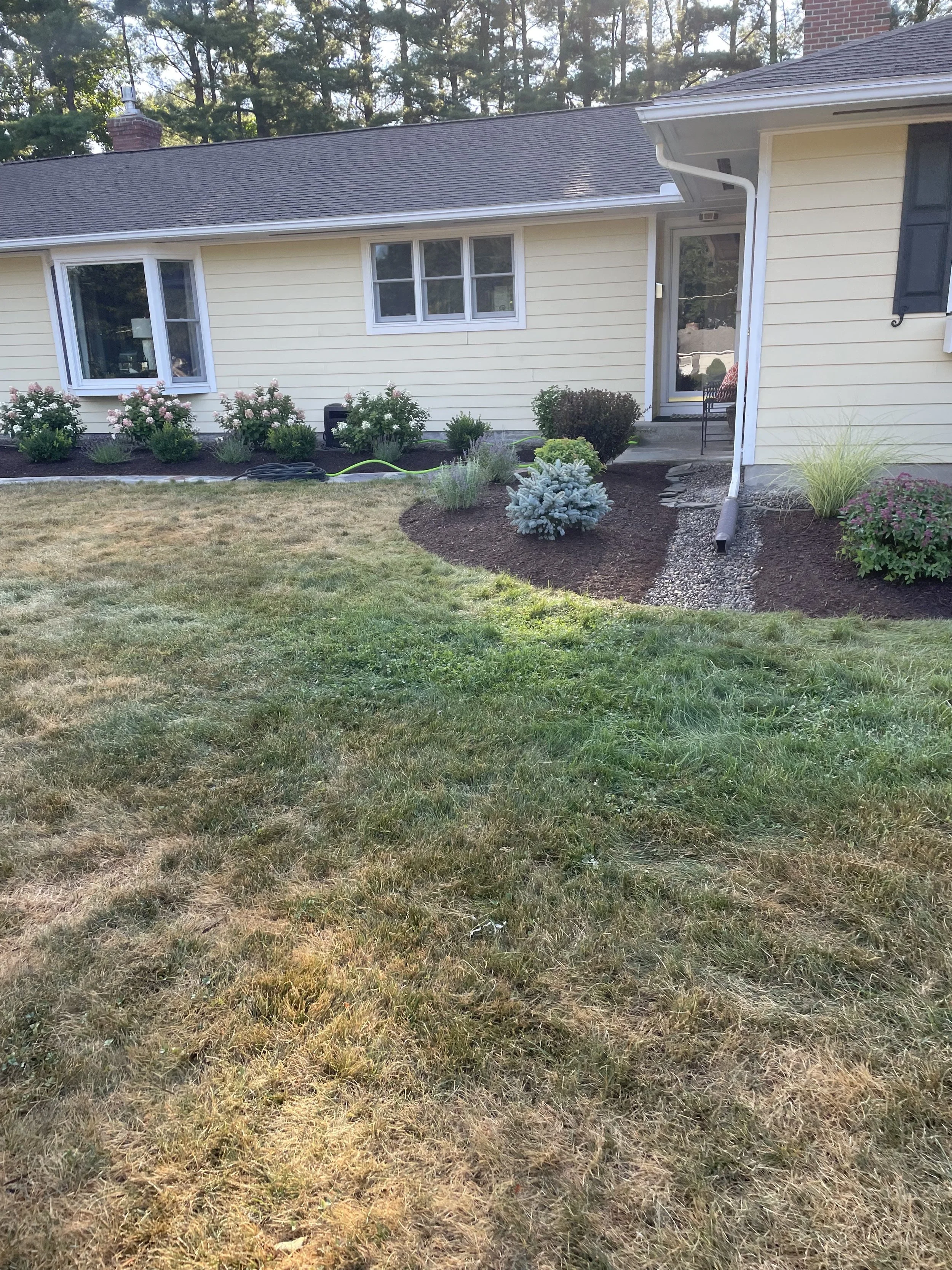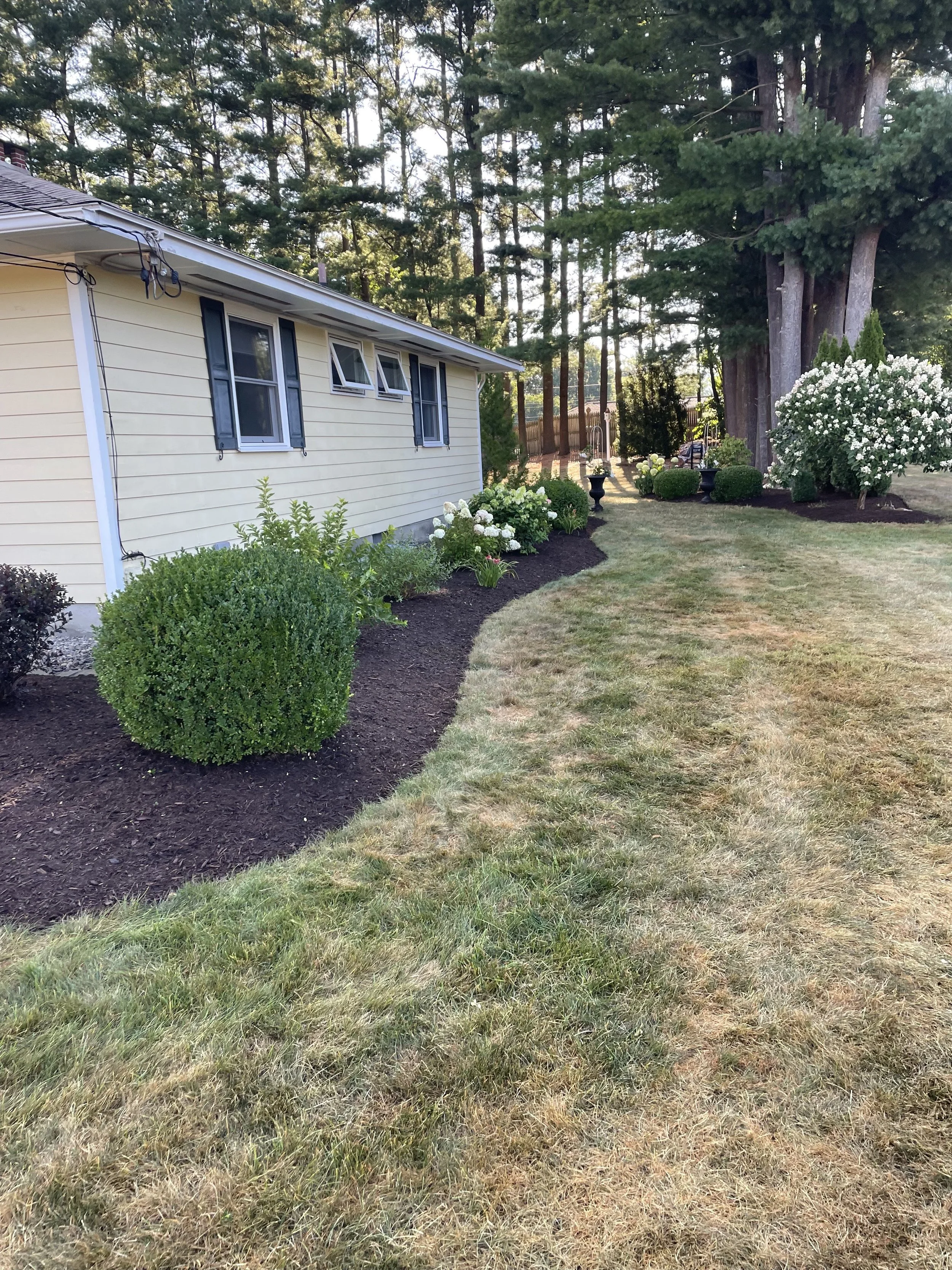This project, completed in 2024, involved a complete landscape renovation. Our team removed all existing landscaping and raised the beds with new topsoil to improve structure and drainage. We then installed a variety of new plants to enhance the property’s appearance and finished the project with a fresh layer of mulch for a clean, professional look.