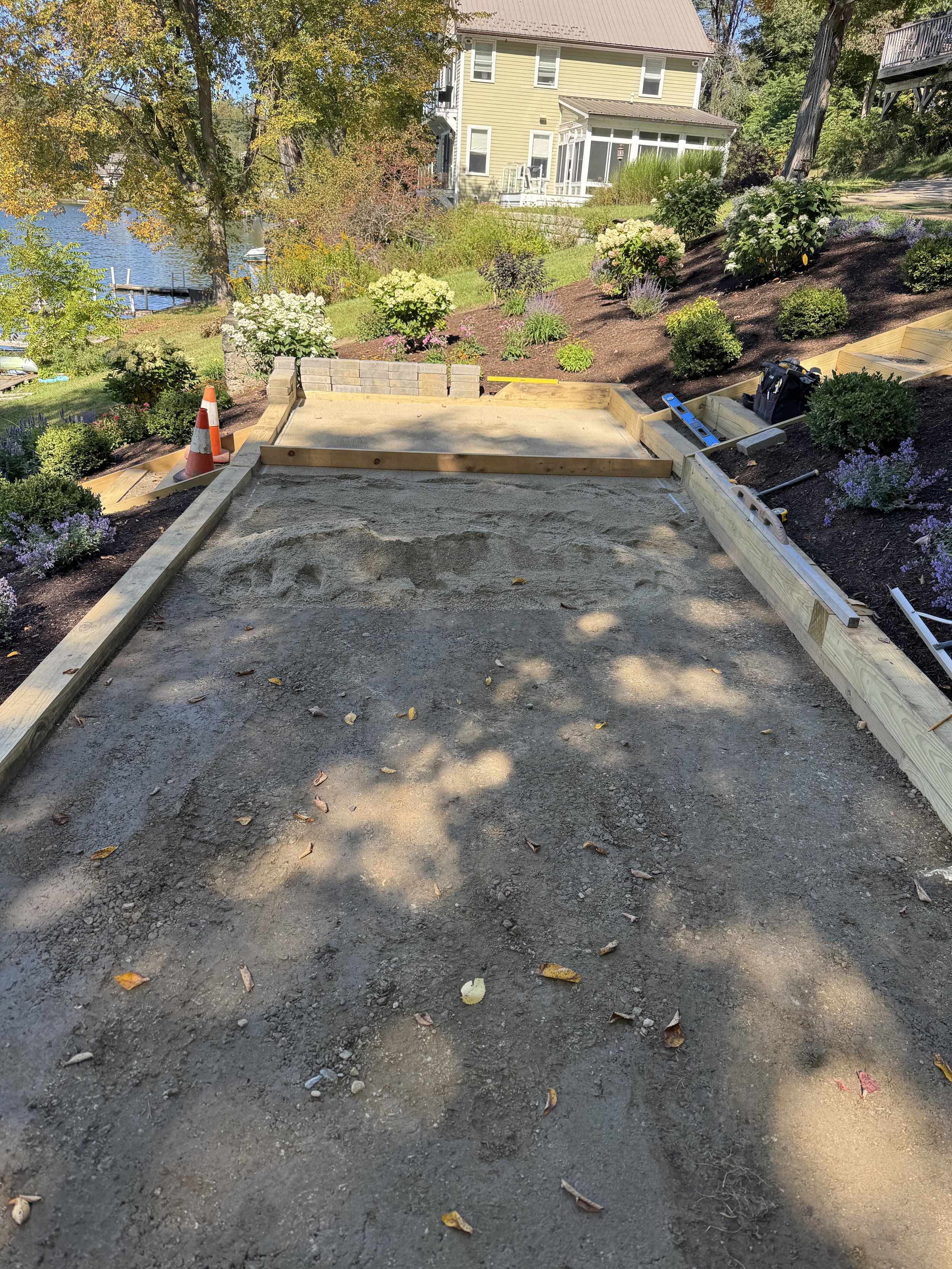 This ongoing project, which began in 2025, is one of our largest and most detailed jobs of the season. The customer requested a complete landscape transformation for their lakefront property, including new landscape beds, a patio, and a set of stairs leading down to their dock.